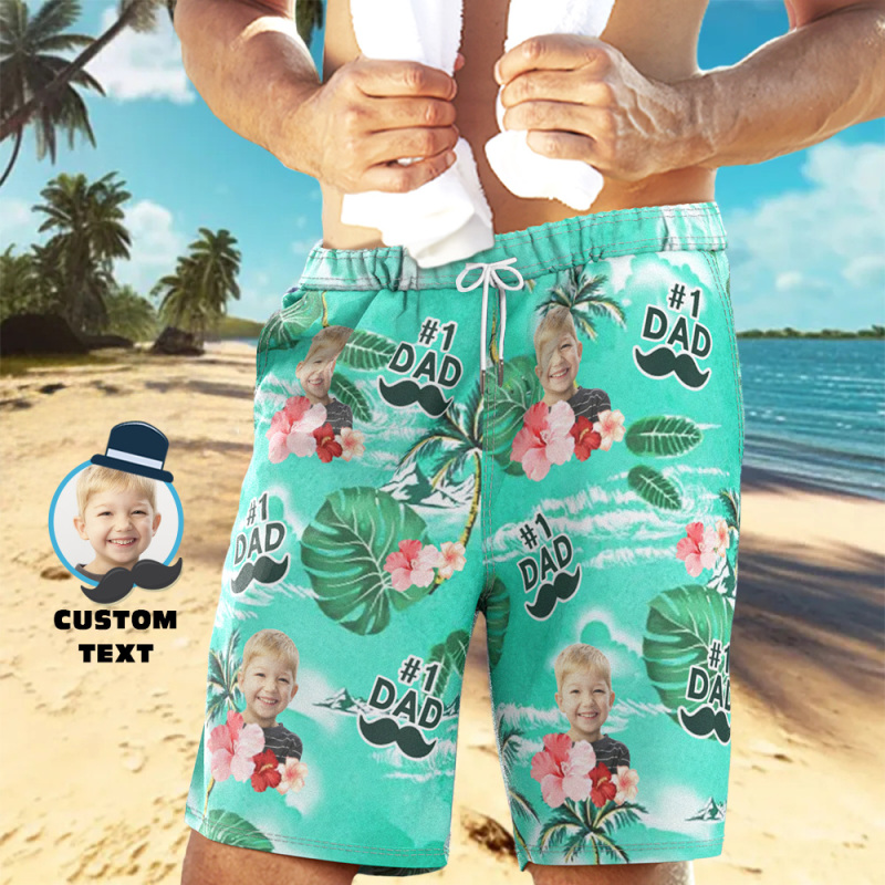Personalized Face Mens Swim Trunks Custom Best Dad Ever Tropical Swim Shorts Fathers Day Gift