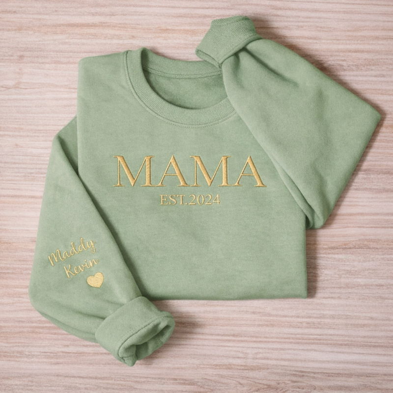 Personalised Mama Embroidered Sweatshirt, Custom Mom Embroidery Hoodie, New Mom Outfit, Pregnancy Reveal Clothing, Happy Mother's Day Gifts