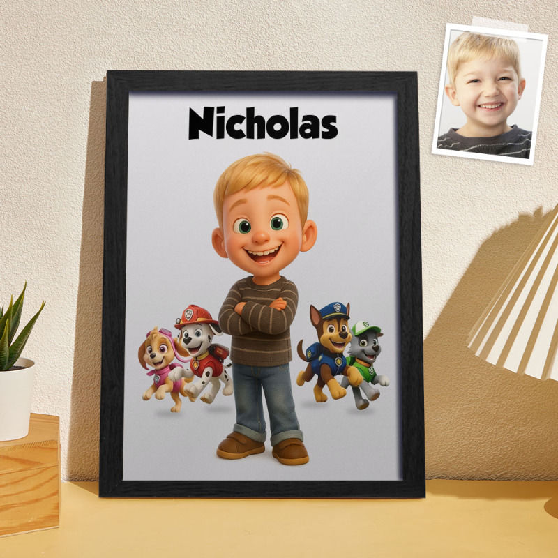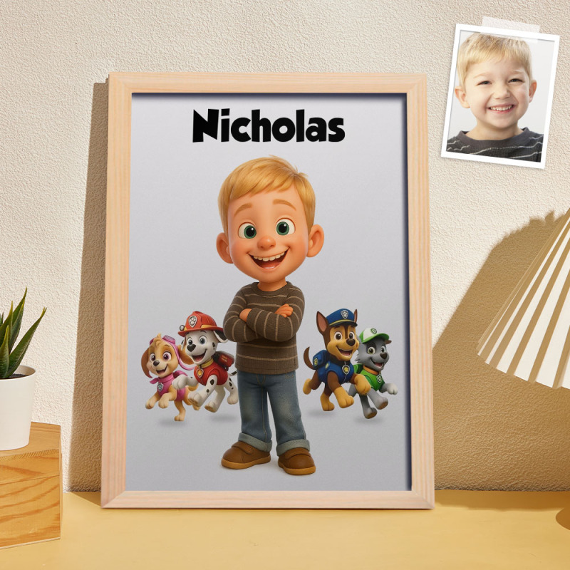 Turn your child’s photo into a Pixar-style Paw Patrol character poster! Your little one will appear alongside Chase, Skye, Marshall, and the whole Paw Patrol crew – a fun, personalized keepsake for kids who love adventure.