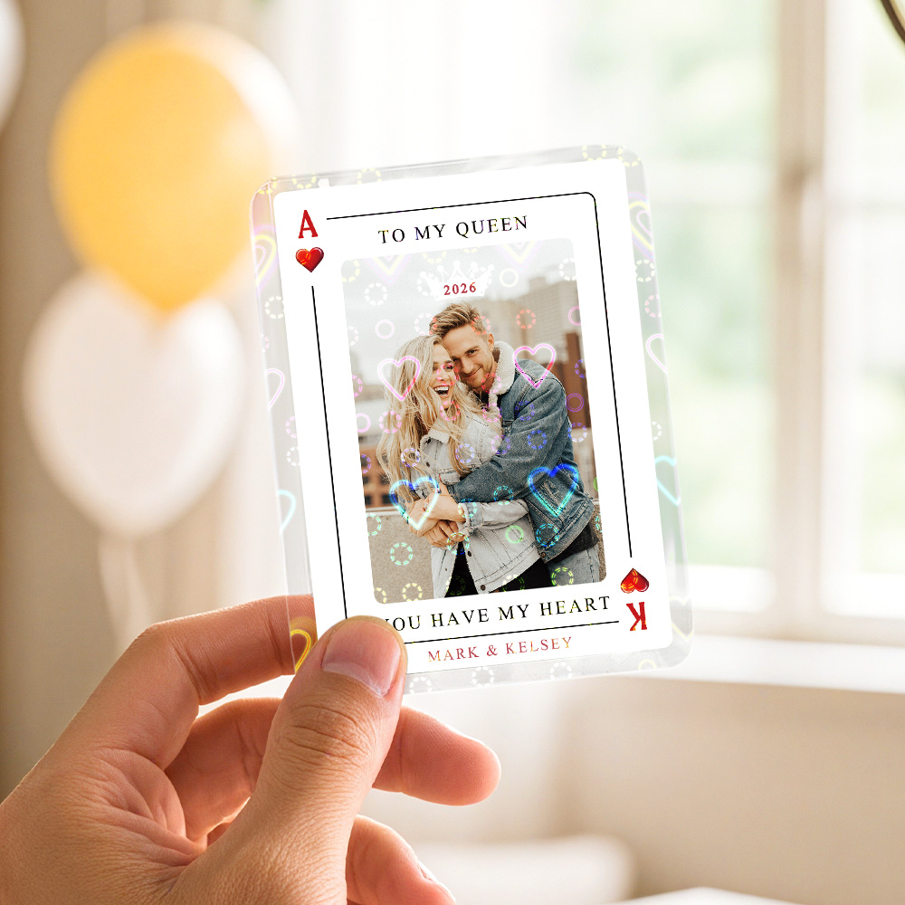 Queen of Hearts Poker Photo Valentine's Day Heart Holographic Card