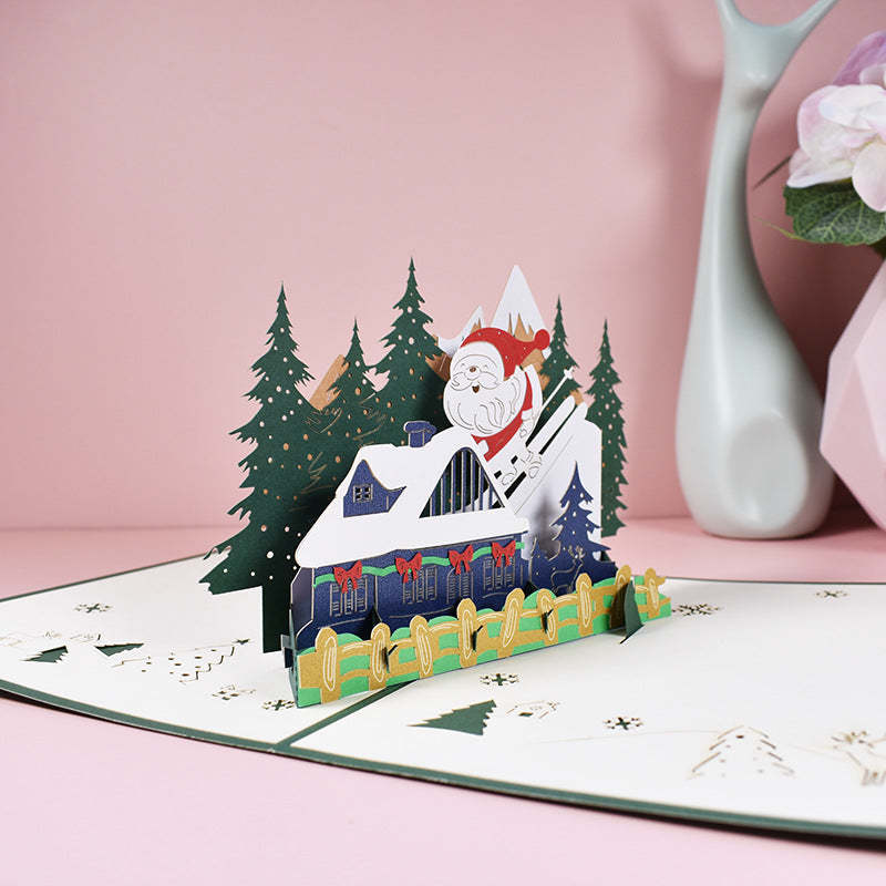 Christmas in July Santa Skier 3D Pop-Up Card Greeting Card