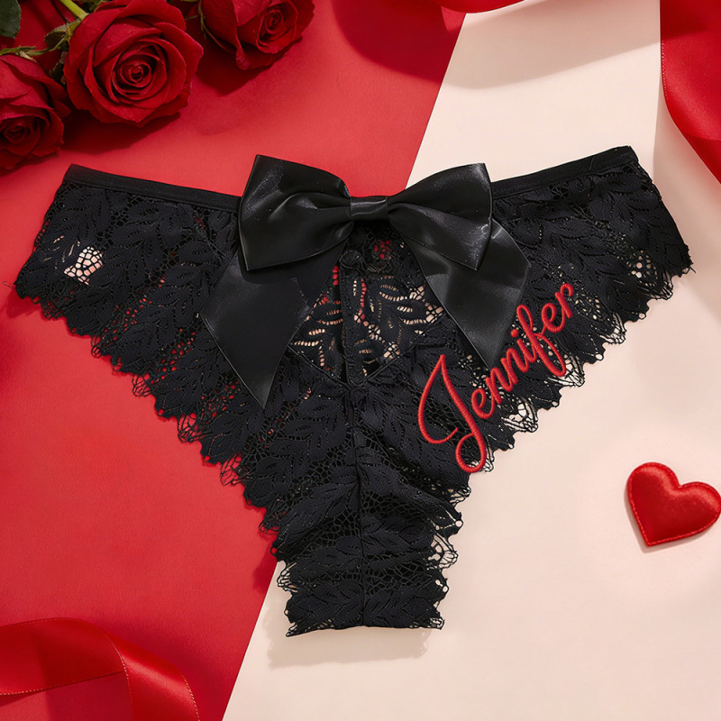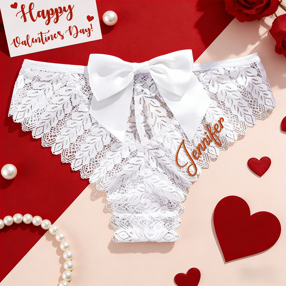 Make your wedding day extra special with our personalised bridal lace panties, beautifully embroidered with your new last name in elegant blue thread - the perfect "something blue" for your big day.