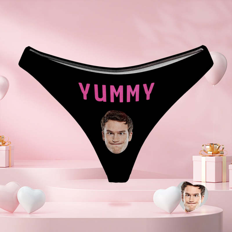 Women's Custom Face Thong Personalised Black Sexy Naughty Panty It is Yummy